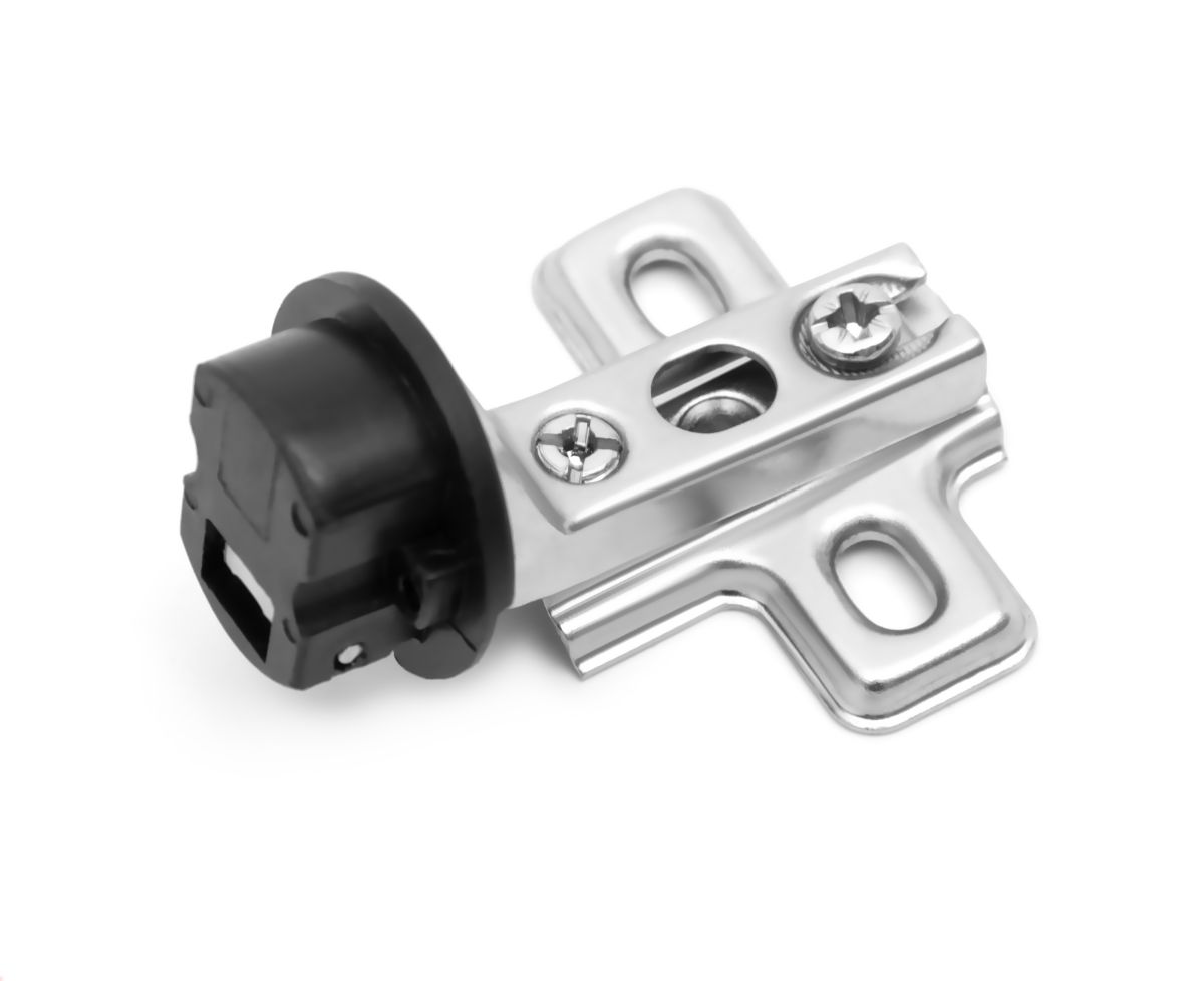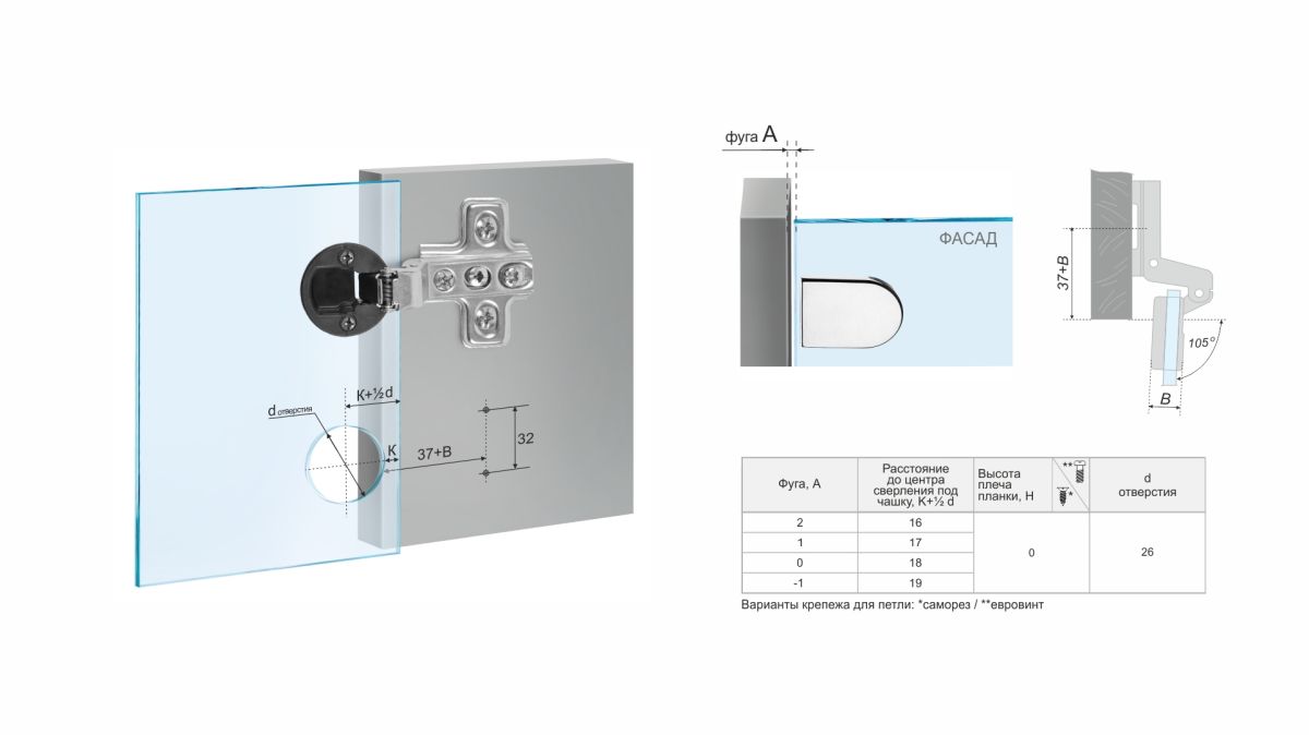 H502 — мебельная петля без амортизатора, с углом установки 90°. Предназначена для надежного крепления стеклянных фасадов. H502 является двухходовой, с возможностью остановки фасада в полуоткрытом положении.
