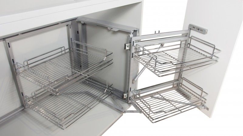 Выдвижная корзина UNIVERSE обеспечивает стабильное бесшумное движение и плавное закрывание без рывков даже при максимальной загрузке 60 кг. Модель позволяет комфортно отрегулировать положение фасада в трех плоскостях. Корзина универсальна и может быть установлена как в левых, так и правых модулях на 900-1000мм. Минимальная ширина фасада - 400 мм.