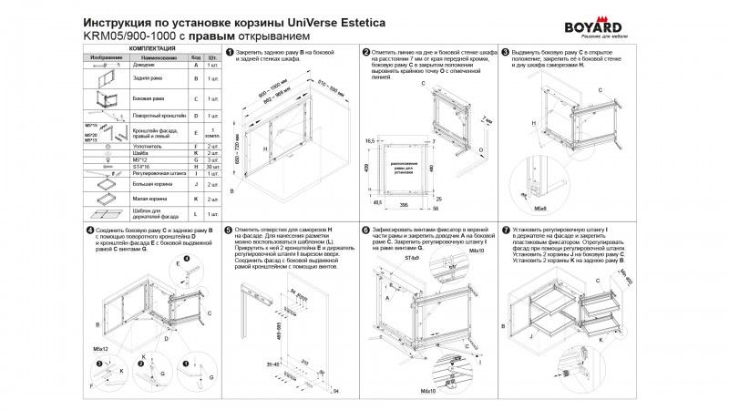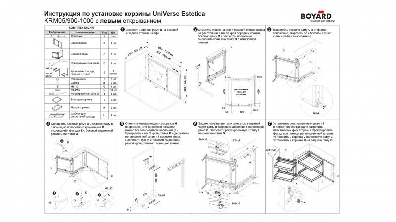 Один комплект UNIVERSE реализуется в двух коробках: в одной поворотно-выкатной механизм, во второй – 4 корзины.