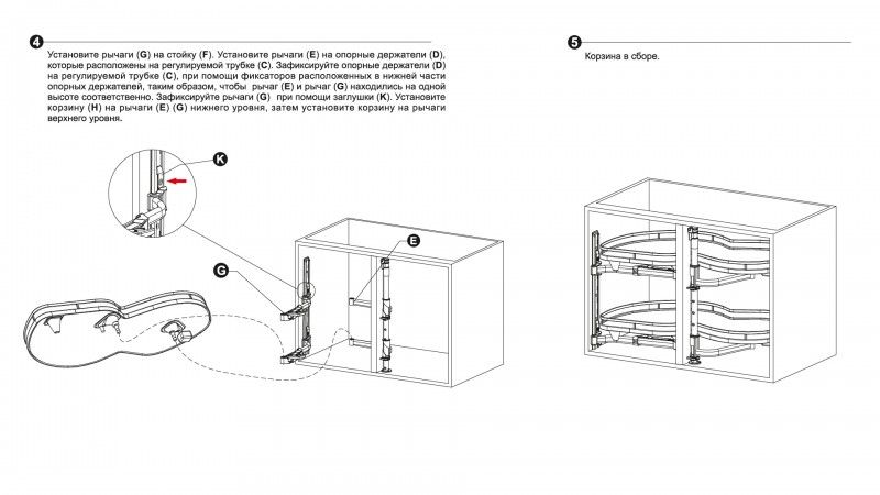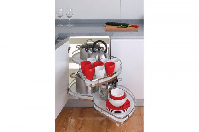 «Волшебный уголок» Lotus – это стильная и эргономичная многофункциональная корзина, предназначенная для хранения кухонной утвари: посуды, кастрюль, бытовой техники и пр. в угловых модулях размером 900-1000 мм. Модель представлена в двух вариантах: для левых и правых угловых шкафов.
