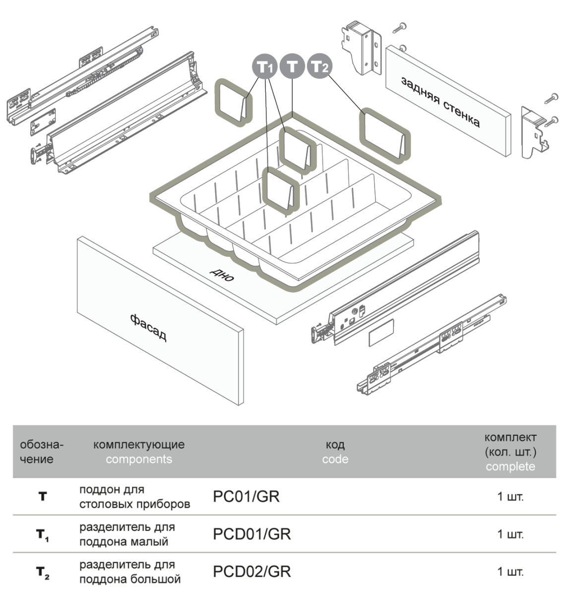 PC01/GR/530x480 Поддон для выдвижного ящика Серый