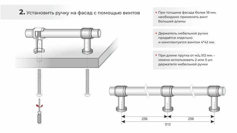 В комплект входят: держатель HOLD RN003 и крепёжный винт 4*42 мм, подходящий для установки на фасады 16-18 мм.