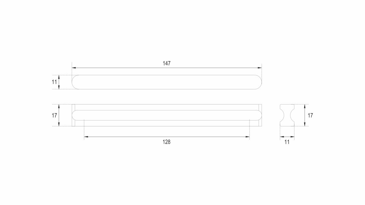 Ручка представлена как в небольших размерах от 128 мм, так и в форм-факторе 960 мм. VOLNA RS065 можно устанавливать не только вертикально, но и горизонтально, для завершённого образа мебельного гарнитура.