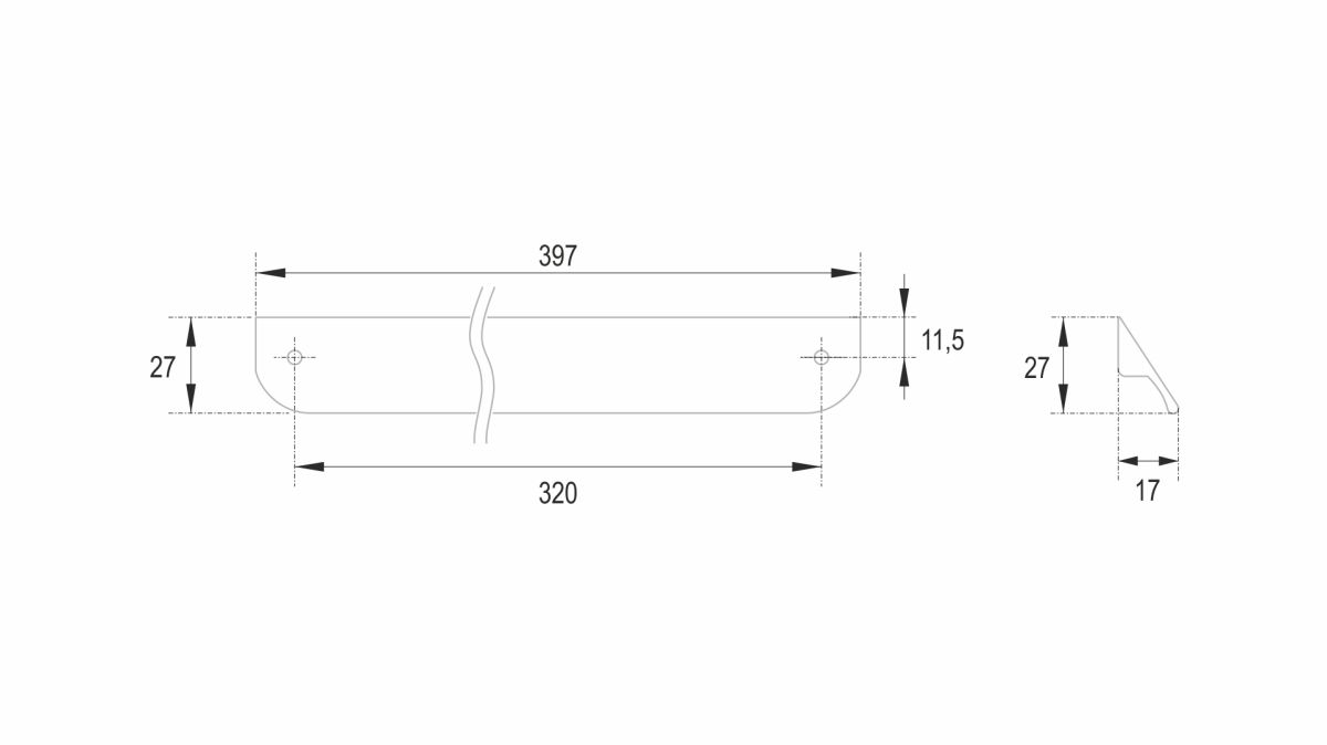 TICK RS156 — лаконичная ручка-скоба, которая выглядит как торцевая. Предназначена для установки на фасады толщиной от 16 мм.