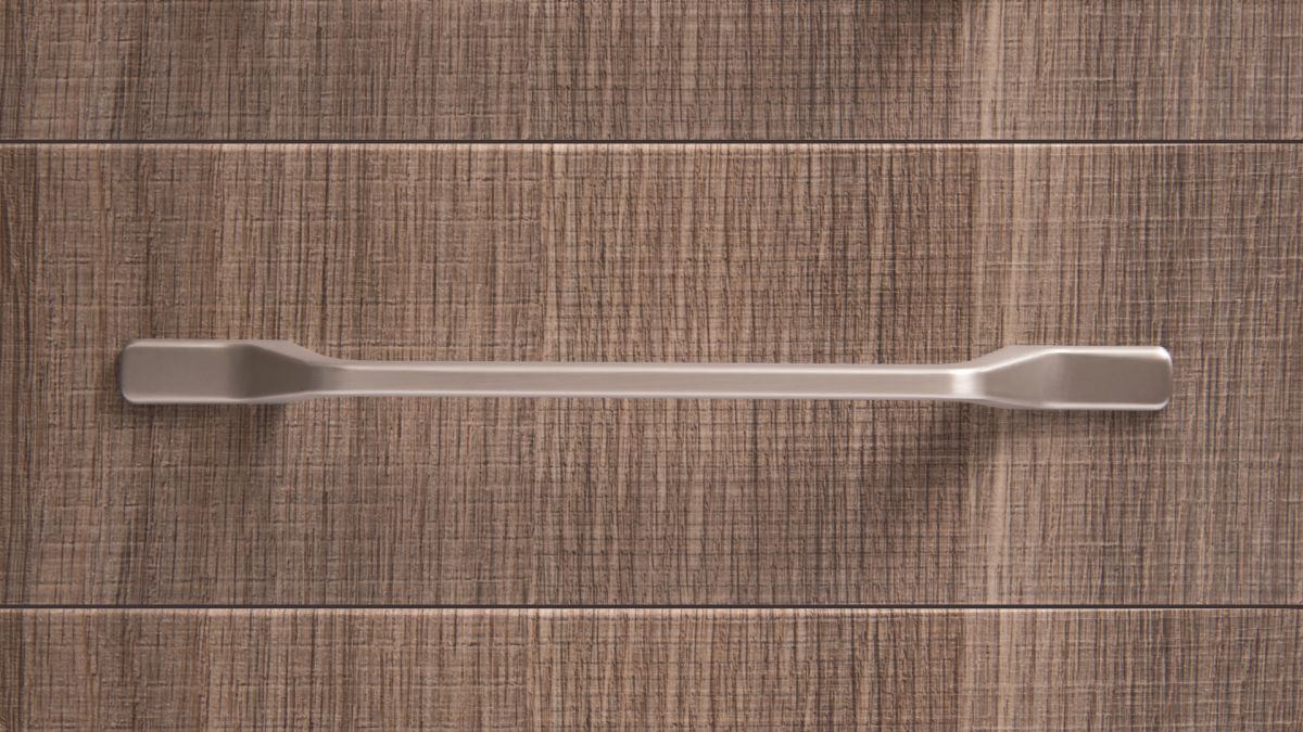 Геометричная форма скобы NUUK — абсолютный тренд и хит сезона, адаптивный практически ко всем современным стилям. Строгий, сдержанный дизайн с плавными линиями обеспечит безупречную эргономику. Модель в цвете «Матовый черный» будет хорошо смотреться на светлых древесных декорах с фактурной, природной проработкой — именно такие сочетания часто встречались на миланской выставке iSaloni-2018. Скоба NUUK в цвете «Матовый атласный никель» и «Хром полированный» удачно дополнит светлую и темную мебель. Если вы не планируете создавать акценты на лицевой фурнитуре, скоба NUUK в светлом покрытии — отличное решение.