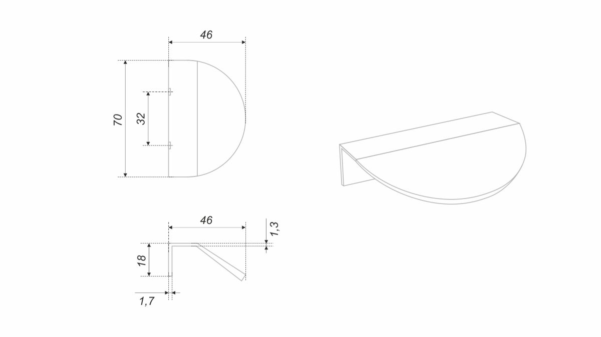 VIVA RT012 — торцевая ручка из алюминия, с геометричным выступом в форме полукруга. Для удобства захвата на ручках увеличен отступ язычка, а на его внутренней стороне предусмотрено рифление. Устанавливается наложением, подходит для фасадов толщиной до 18 мм.