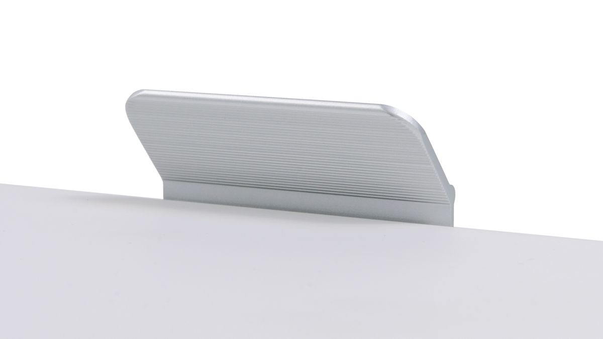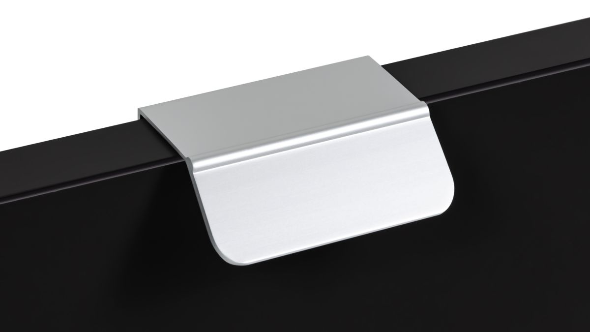 KANT RT013 можно устанавливать не только вертикально, но и горизонтально — для завершённого образа мебельного гарнитура. Модель закрепляется на верхний торец фасада, саморезы (приобретаются отдельно) вкручиваются в отверстия с фаской с задней стороны фасада.