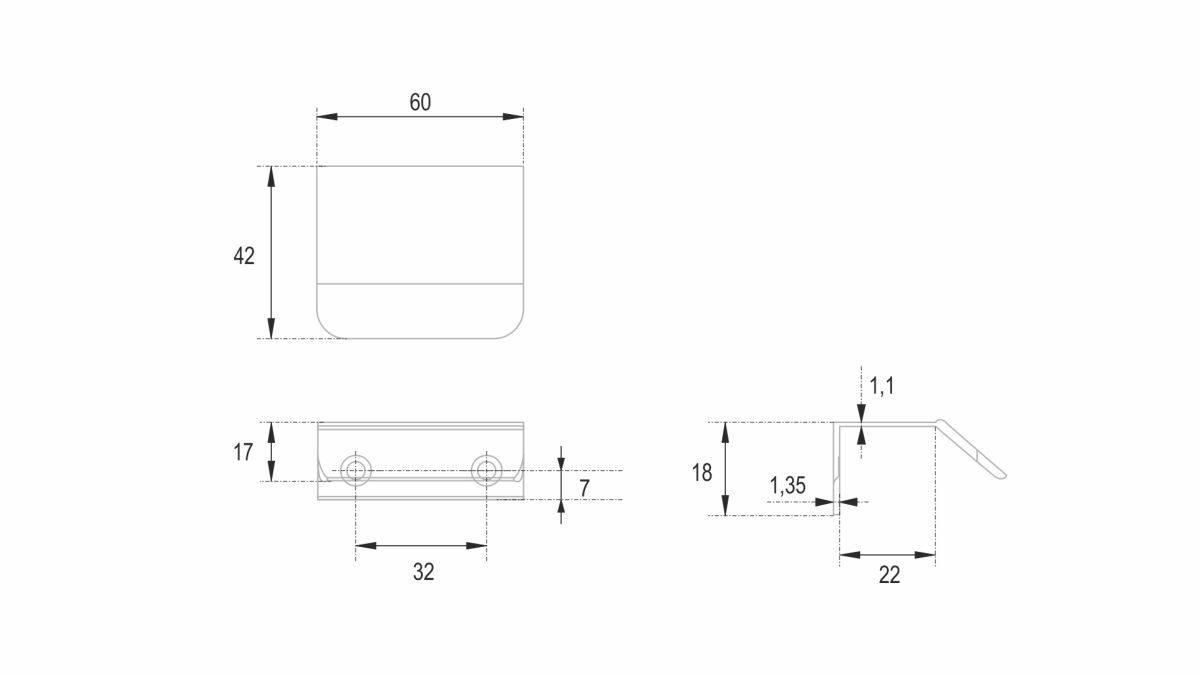 KANT RT013 можно устанавливать не только вертикально, но и горизонтально — для завершённого образа мебельного гарнитура. Модель закрепляется на верхний торец фасада, саморезы (приобретаются отдельно) вкручиваются в отверстия с фаской с задней стороны фасада.