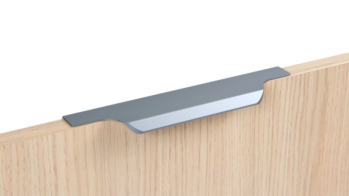 TERA подойдёт как для узких бутылочниц и корзин-карго, так и ящиков формата макси. Торцевую ручку, независимо от размера, можно устанавливать не только чётко в размер фасада, но и как широкий язычок. Ручки в виде язычков прекрасно выполняют свою функциональную и эстетическую роль на более широких фасадах.