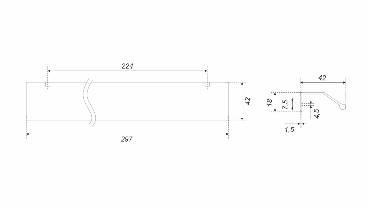 Модель крепится на фасад наложением и фиксируется при помощи саморезов. Саморезы не входят в комплект и приобретаются отдельно. Размер саморезов необходимо подобрать самостоятельно, исходя из толщины фасада, на который будет устанавливаться ручка.