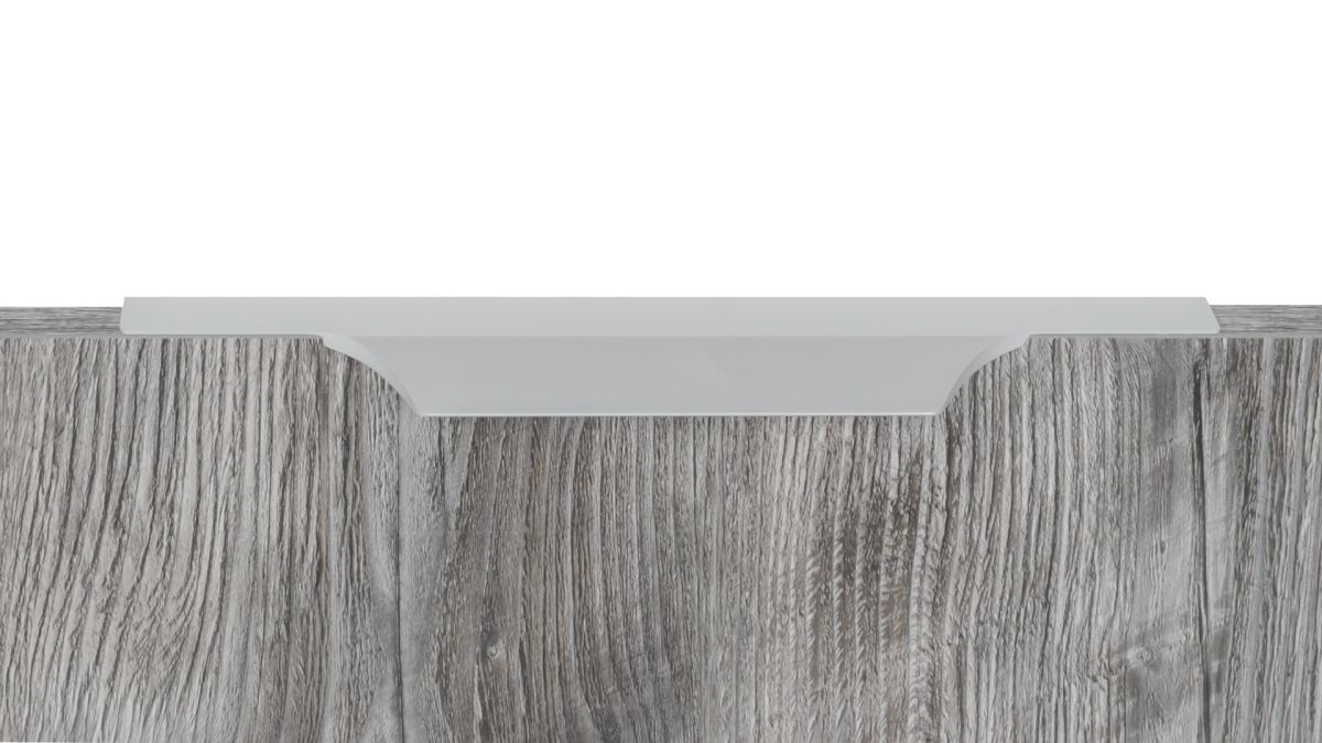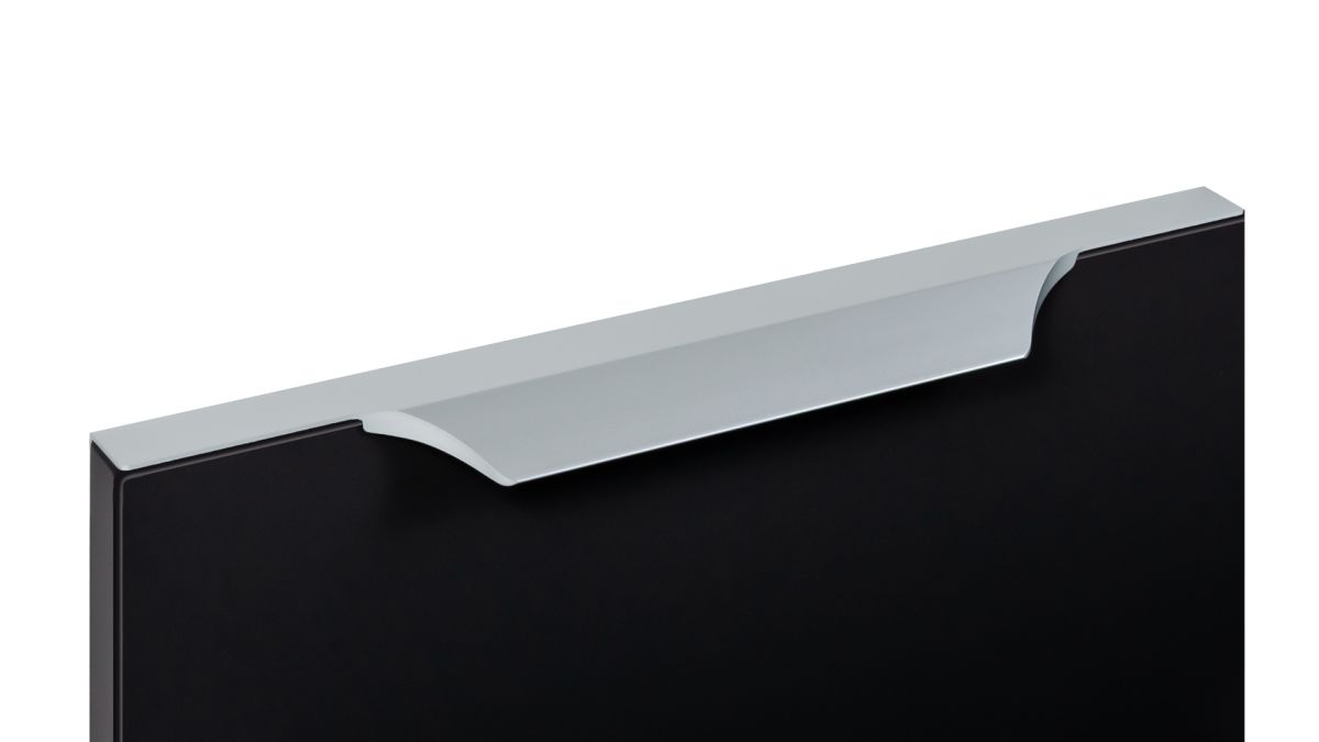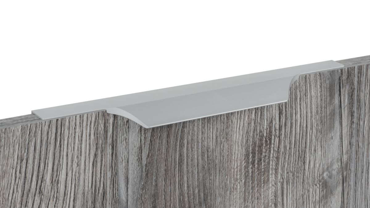 WING RT114 — торцевая ручка с изгибом из алюминия, устанавливается наложением на фасады толщиной 18,8 мм (в цветах BL,GR,SC,SG) и 18,5 мм (в цвете W).