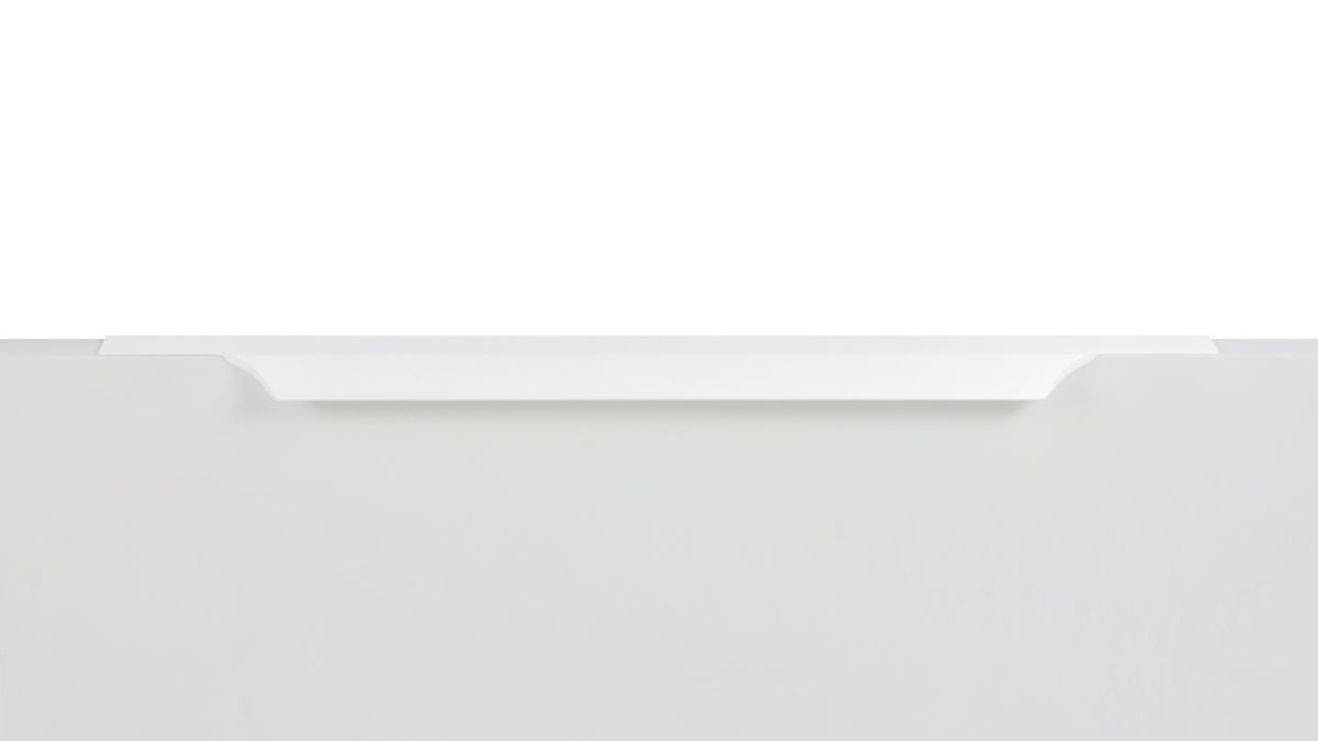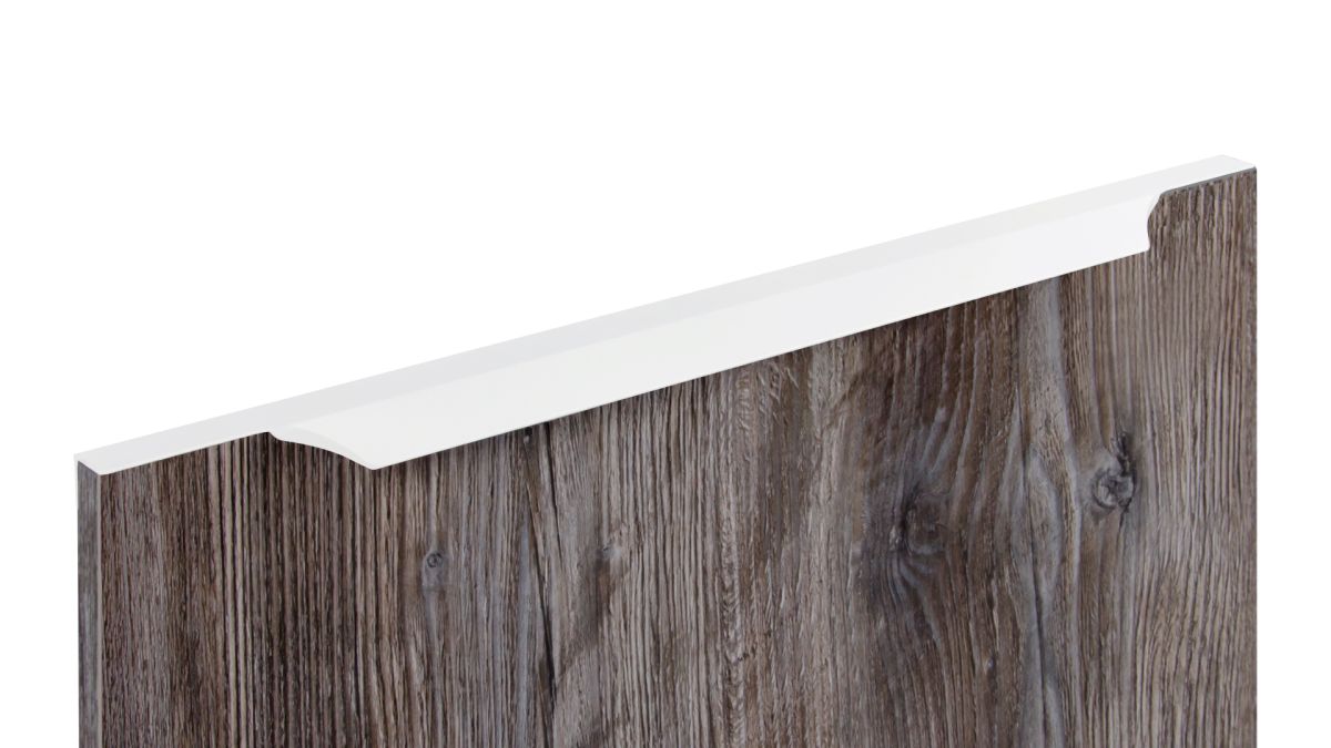 WING RT114 — торцевая ручка с изгибом из алюминия, устанавливается наложением на фасады толщиной 18,8 мм (в цветах BL,GR,SC,SG) и 18,5 мм (в цвете W).
