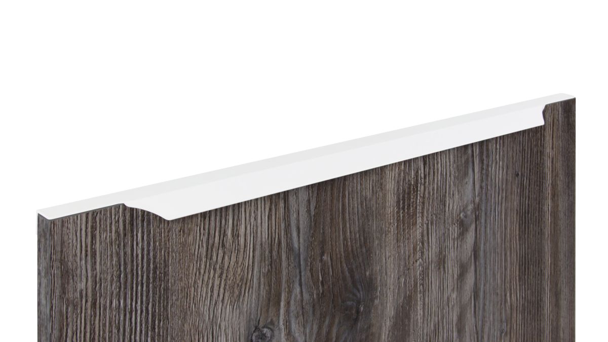 WING RT114 — торцевая ручка с изгибом из алюминия, устанавливается наложением на фасады толщиной 18,8 мм (в цветах BL,GR,SC,SG) и 18,5 мм (в цвете W).