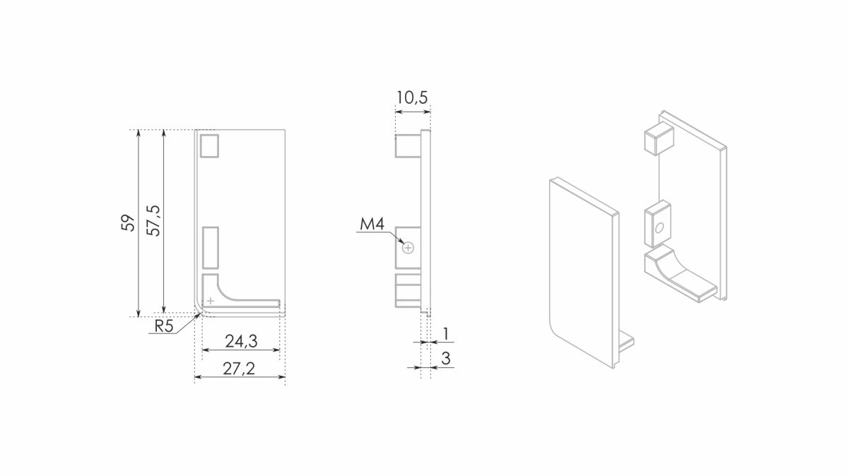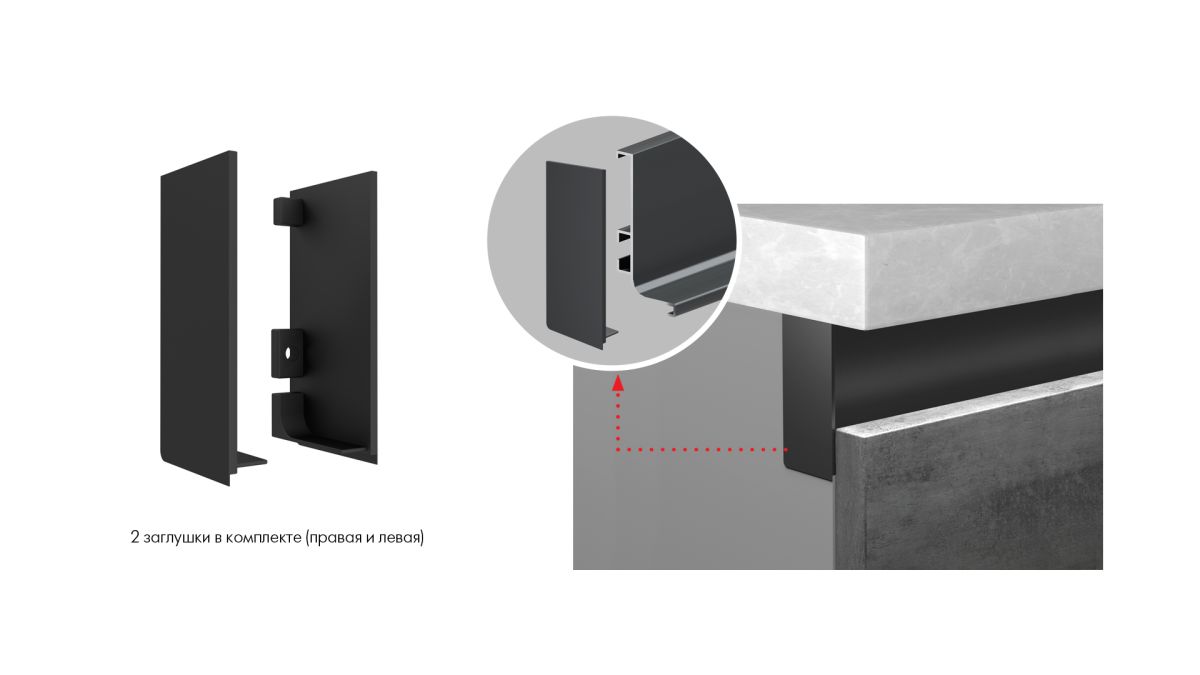 В комплект входит: левая и правая заглушки, 2 винта для крепления заглушки к профилю, ключ-шестигранник для фиксации винтов.