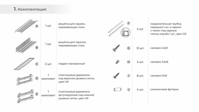 - Комплекты пластиковых держателей нижнего и верхнего уровня - 2 шт.