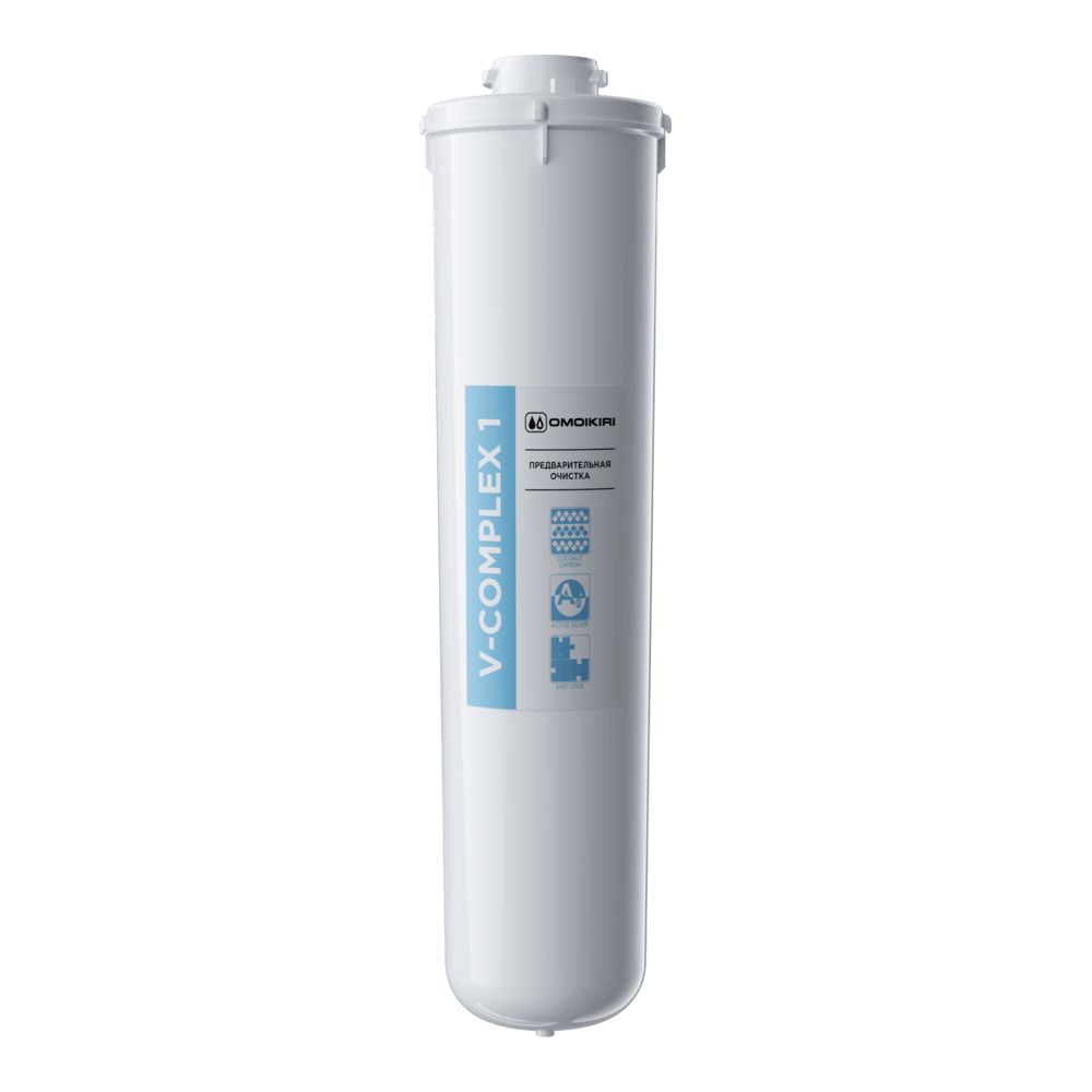 Модуль сменный фильтрующий «V-Complex1». Блок предварительной водоподготовки предназначен для удаления из воды примесей, способных повредить обратноосмотическую мембрану, таких как гидроокись железа и активный хлор.