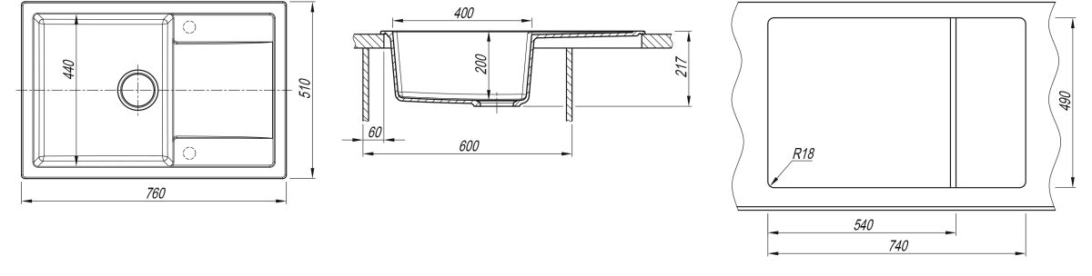 Мойка Dr Gans «ТЕХНО 760» прямоугольная 760х510х217, графит