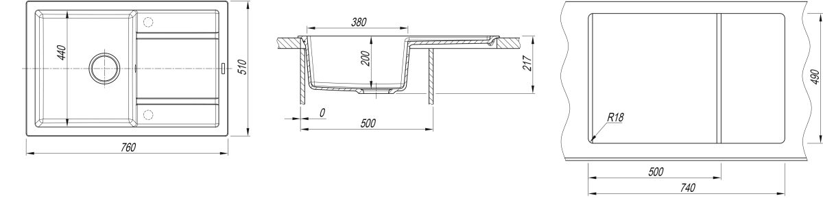 Материал однороден по всей глубине мойки без верхнего покрытия.