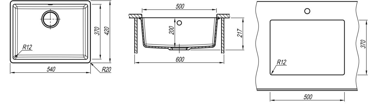Мойка FLORENTINA «Вега-500» 540*420*217 черный