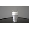 Складной стакан ёмкостью 350 мл с трубочкой подходит и для холодных, и для горячих напитков. Чтобы не обжечься, предусмотрена манжета. Стакан легко сложить и убрать в сумку – он занимает очень мало места. Или прицепить к ремешку с помощью карабина и взять с собой. Крышка и клапан закрываются герметично, защищая от протекания.