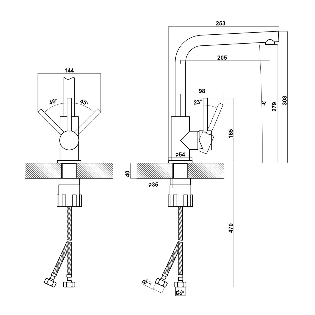 Смеситель ДЕЛЬТА FL, цвет Антрацит (DELTA FL, Anthracite)